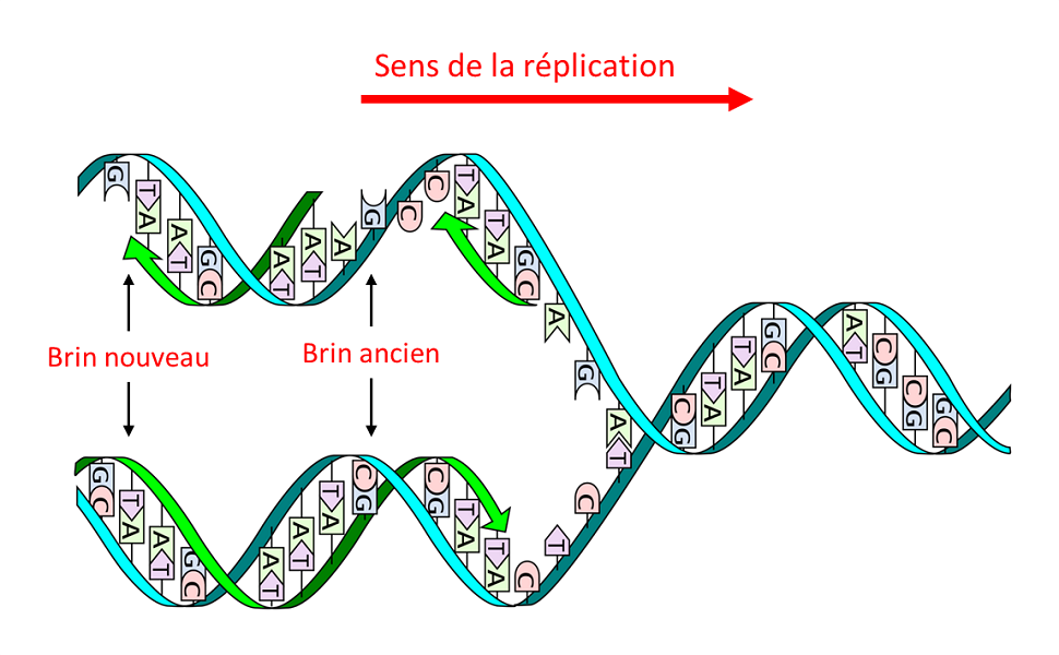 La découverte de la structure de l’ADN en 1953 a permis de comprendre comment il était recopié (on emploie également les termes répliqué ou dupliqué) lors des divisions cellulaires :