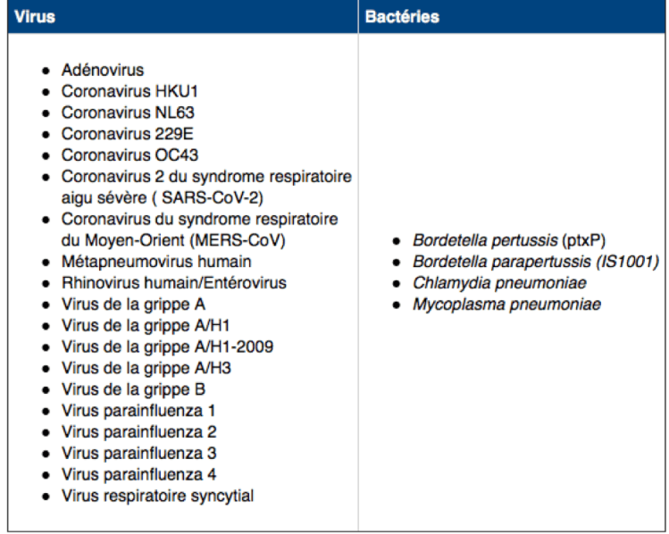 Ainsi BioFire, filiale américaine de bioMérieux spécialisée en biologie moléculaire, a mis au point un test multiplexe permettant de détecter et d’identifier en 45 minutes 23 microbes différents (19 virus, 4 bactéries) responsables d’infections respiratoires aigües, Sars-cov-2 compris.