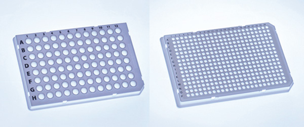 Les échantillons à analyser sont placés dans des plaques de 96 ou de 384 puits qui font office de « tubes à essai » et qui reposent sur le porte échantillons du thermocycleur.