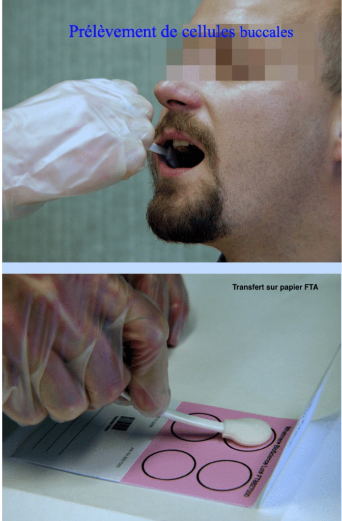 En France, les prélèvements buccaux issus des individus sont placés sur un support appelé FTA (Fast Technology Analysis). Il s’agit de cartes à base de cellulose enduites de détergents qui font éclater les cellules buccales et les microbes. Elles permettent la préservation et la fixation des ADN et des ARN ainsi libérés. On obtient alors un échantillon adapté à l’analyse de l’ADN par PCR et des ARN par RT-PCR sans risque de contamination pour les manipulateurs.