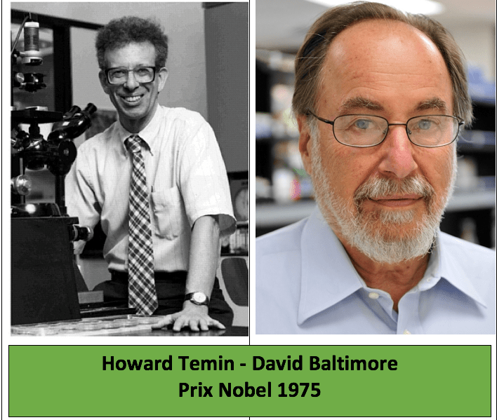 Un autre chercheur américain, David Baltimore, découvrit cette même enzyme chez un virus induisant des leucémies chez la souris. Leurs découvertes furent publiées le 27 juin 1970 dans le même numéro de Nature (1) (2). Ces virus à ARN qui synthétisent l’ADN via une transcriptase inverse sont appelés rétrovirus. Par ce biais, ils s’intègrent dans l’ADN des cellules infectées et peuvent être transmis à la descendance de ces dernières.
